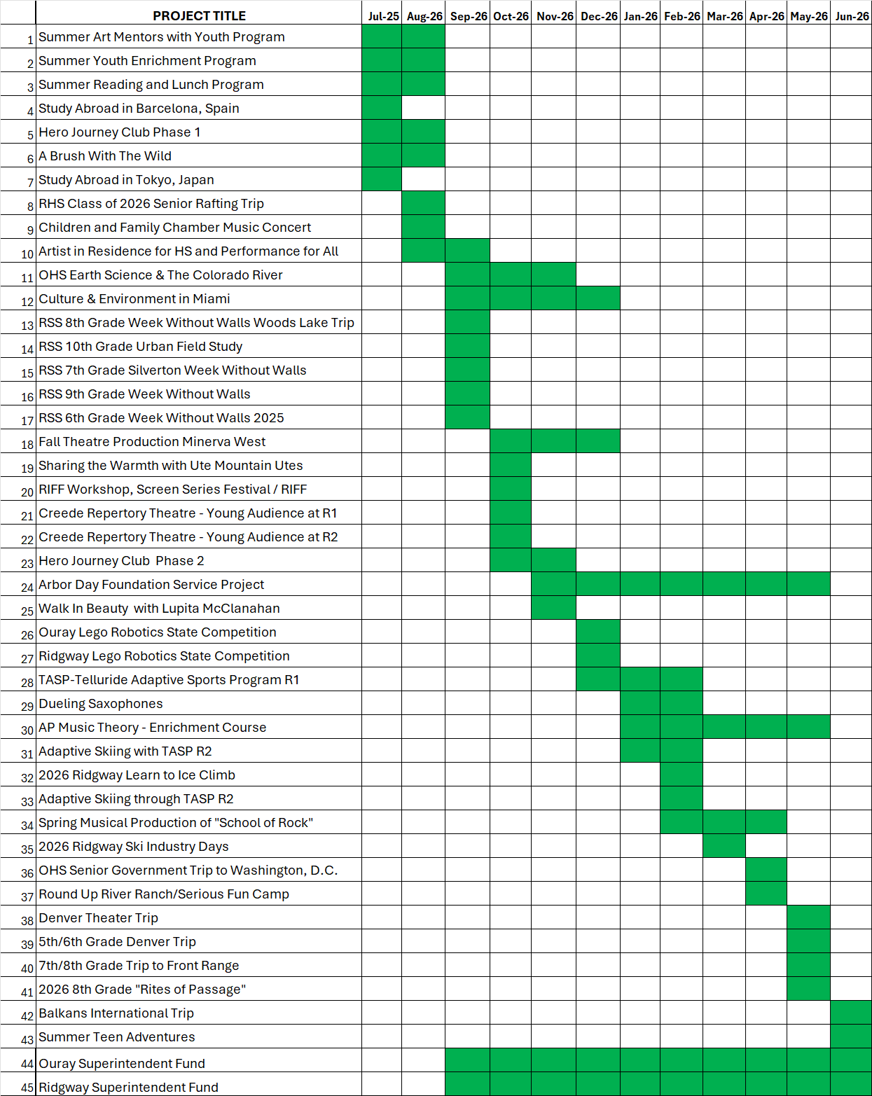 The Foundation has provided funding to the Youth of Ouray County every year since 1992